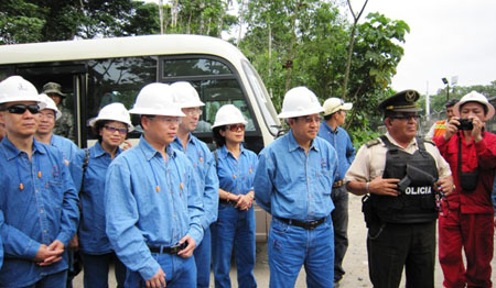 2010年2月16日,中国驻厄瓜多尔使馆顾稼丰政务参赞带领部分馆员前往亚马逊地区,看望并慰问中石化国际石油工程公司驻厄公司现场钻井队作业人员,公司领导吴克兵经理等陪同。