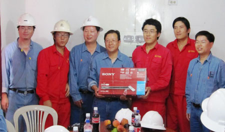 最后,顾参赞代表使馆向钻井队赠送两台DVD放映机和部分国产优秀音像资料,以丰富中方工作人员业余文化生活。 |