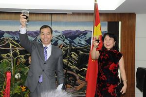 2010年2月11日晚,在欢乐祥和的气氛中,陈平临时代办在大使馆举行2010年春节招待会。来自委内瑞拉各地的侨领、中资企业领导和代表约160人与会。