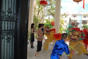 古巴武术学校师生精彩的舞狮表演,博得阵阵掌声。席间播放了《中国春节》及欢快的中国民乐,烘托了浓郁的节日气氛,把活动推向高潮。 |