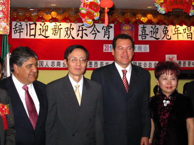 2011年1月22日和23日,中国驻墨西哥使馆王刚代办分别应墨西哥中国商业贸易联合总会和墨西哥华人华侨社团联合总会邀请,参加了上述两个组织举办的春节晚会。