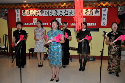 2011年2月8日,驻墨西哥大使曾钢和夫人刘令娥出席墨西哥华人华侨社团联合总会、墨西哥中国和平统一促进会和墨西哥中国人总商会联合举办的欢迎晚会。