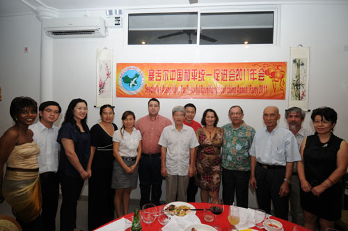 中新网2月11日电 2月8日晚,新春伊始,塞舌尔中国和平统一促进会在维多利亚市金月酒楼举办了“塞舌尔中国和平统一促进会2011新春年会”。中国驻塞舌尔大使馆大使王卫国、塞舌尔国民议会前议长麦格雷戈和夫人、塞舌尔中央银行行长Pierre Laporte、塞舌尔旅游局亚太区总经理、塞舌尔华人华侨代表以及塞舌尔赴中国留学生代表等嘉宾应邀出席年会晚宴。