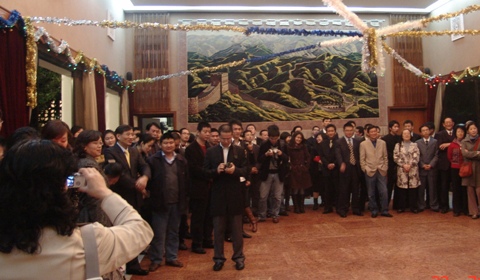 龚大使在招待会上发表讲话说:“刚刚过去的2008年对中华民族来说是极不平凡的一年,中国人民同心同德、顽强拼搏,经受住了汶川特大地震和南方大范围冰雪灾难的严峻考验。北京奥运会和残奥会取得巨大成功,神舟七号载人飞船顺利升空,积极应对国际金融危机的巨大挑战,这一切成就都归功于30年改革开放所奠定的坚实基础”。龚大使同时真诚感谢华侨华人在中国面临大灾大难时众志成城、慷慨捐助,充分表达了对祖国、对同胞最纯朴的爱心和深情牵挂,体现了炎黄子孙“血浓于水”的手足之情。