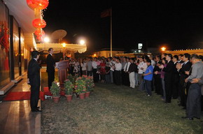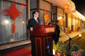 2010年2月4日晚,中国驻苏丹大使馆张灯结彩、灯火斑斓,李成文大使在此隆重举行在苏华人华侨新春招待会。我在苏中资机构、维和部队和警察、援苏医疗队、华人华侨及留学生代表等共计400余人应邀出席。