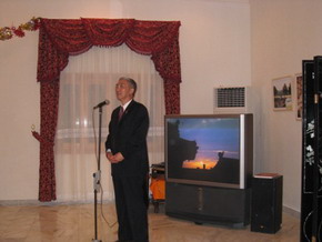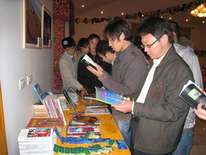 联欢会放映了国庆60周年大阅兵精彩片段,全体再次感受那威武雄壮的时代脉搏,共同祝愿祖国更加繁荣强盛。使馆青年馆员与留学生们交流了在利生活的感触和体会,介绍了在使馆工作的心得。会场一隅的书报展台前,留学生们手捧丰富多彩的中文报刊,读得津津有味,当听说今后使馆将为留学生中文阅读、收看CCTV节目提供帮助时,同学们更是欢欣鼓舞。