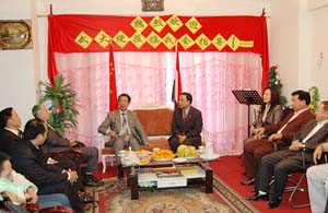 2010年2月8日,驻埃及大使武春华在董满意参赞的陪同下走访在埃华人华侨团体,了解华人华侨的工作和生活情况,并向他们送去新春的问候与祝福。