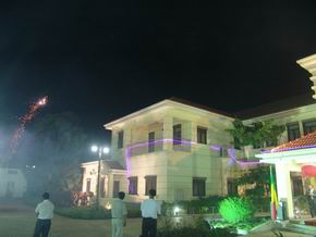 前来参加招待会的各界宾朋 鞭炮烟花迎虎年