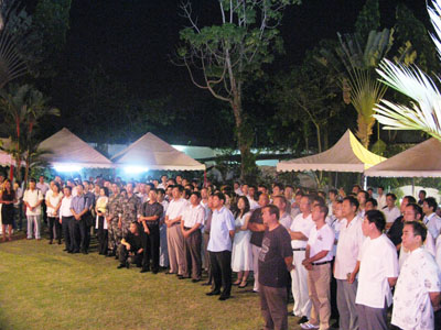 招待会上放映了建国60周年阅兵式和载歌载舞的晚会节目,并在欢声笑语中圆满结束。 |