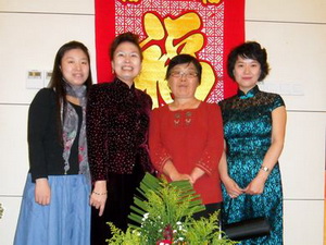 出席招待会的华人菲琼(右一)、大使夫人罗晓敏(右二)、
