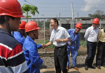 2011年2月4日,大年初二,中国驻赤道几内亚大使王士雄专程走访中国机械工业集团公司和中国葛洲坝水利水电工程集团赤几项目驻地,代表大使馆为广大员工带去兔年的第一份祝福。王大使向节日期间仍然奋斗在工地上的所有工人和公司管理人员致以新春问候,祝愿他们在新的一年里身体健康,事业顺利,平平安安。