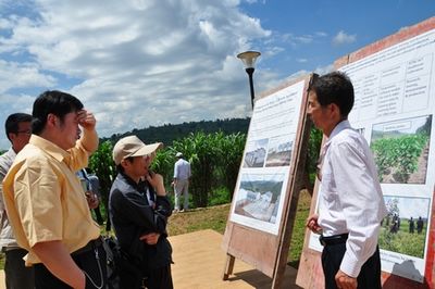 2011年2月5日,驻卢旺达大使舒展考察我援卢竹编项目组、农业技术示范中心等农业项目,并慰问我工作人员。使馆政务参赞李意钢、经商参赞李耀宏陪同。