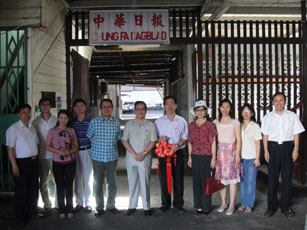 袁南生大使夫妇和《中华日报》社工作人员合影