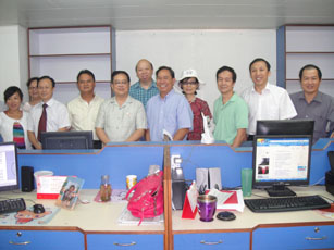 袁南生大使夫妇和《洵南日报》社工作人员合影