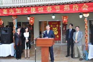 2011年1月30日,中国驻塞内加尔大使龚元兴夫妇在官邸举行2011年春节招待会。我各援塞项目组、中资机构、华侨华人代表及使馆全体工作人员等约300人欢聚一堂,共庆新春,喜迎新年。