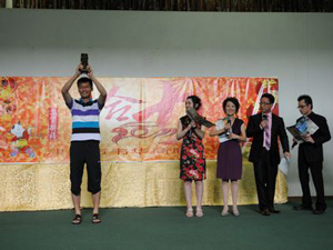 经商处王国庆代表使馆领取篮球赛冠军奖品 全场齐唱《歌唱祖国》 |