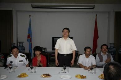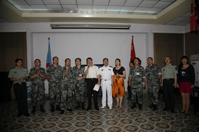 2011年4月30日晚,驻刚果(金)使馆洋溢着欢乐喜庆的节日气氛。使馆全体馆员与联合国刚果(金)稳定团部分中国军事观察员齐聚一堂,庆祝五一国际劳动节并欢送我第十批军事观察员期满离任。