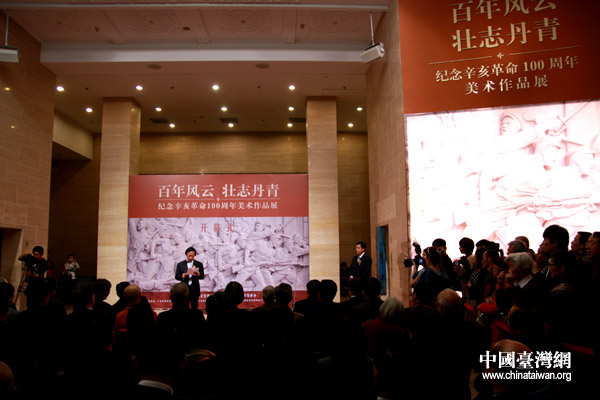 中国台湾网10月8日北京消息 为隆重纪念辛亥革命100周年,“百年风云 壮志丹青——纪念辛亥革命100周年美术作品展览”8日下午在中国美术馆开幕。近300件作品荟萃一堂,展示了两岸四地及海内外美术界纪念辛亥百年、缅怀革命先驱精神的美术创作风貌。