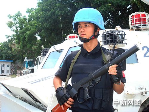 图为中国维和警察防暴队队员。 chinanews发 摄