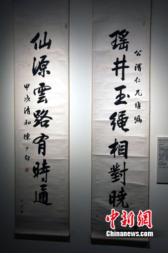 9月27日,辛亥革命爆发即将100周年。图为兴中会台北分会负责人陈少白的手书对联在台北市南海路历史博物馆展出。