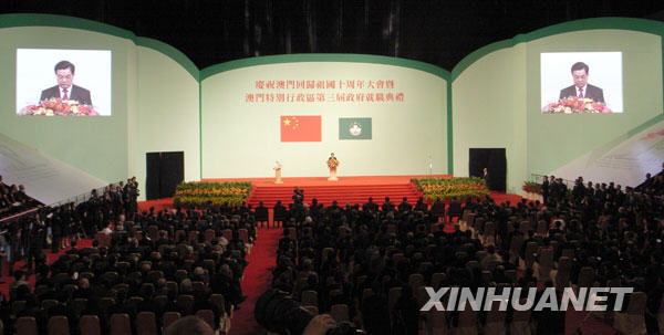 12月20日,庆祝澳门回归祖国10周年大会暨澳门特别行政区第三届政府就职典礼在澳门举行。新华社记者赖向东摄