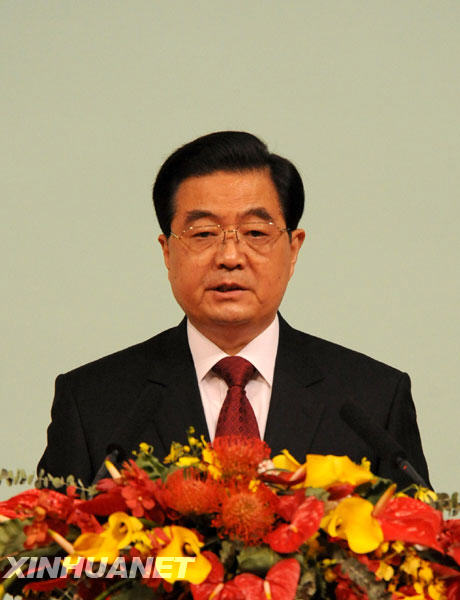 12月20日,中共中央总书记、国家主席、中央军委主席胡锦涛在庆祝澳门回归祖国10周年大会暨澳门特别行政区第三届政府就职典礼上发表重要讲话。新华社记者樊如钧摄