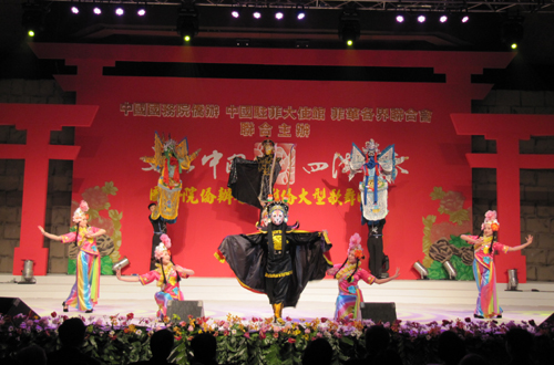 这是国务院侨办和中国海外交流协会“文化中国·四海同春”2010年春节赴菲律宾艺术小组在演出,只见台下掌声不断,台上精彩纷呈:《滚灯》语言诙谐,情节幽默,将川北灯戏的民间生活情趣描绘得淋漓尽致。《变脸》是川剧中神奇美丽的绝技,大木偶变脸更是精彩绝伦,令人叹为观止。