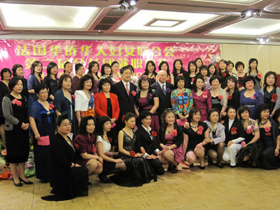 2010年3月20日晚,巴黎协和拉斐特酒店宴会大厅里花团锦簇,高朋满座,喜气洋洋。刚刚结束国内述职回到巴黎的孔泉大使和夫人王莺莺冒雨前来,同旅法侨界400多名妇女代表一起出席法国华侨华人妇女联合会第二届会长团就职典礼暨庆祝“三八”妇女节100周年活动。使馆许建工参赞、何淑琴参赞和部分女外交官出席了当晚的活动。