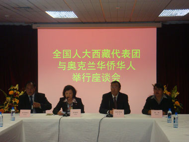向巴平措主任介绍了十一届全国人大三次会议和中央第五次西藏工作座谈会情况、西藏目前的经济社会发展形势,以及代表团此次访问澳大利亚和新西兰首都惠灵顿的情况,高度评价奥克兰华侨华人在反对达赖窜访新西兰、向当地政府及各界宣传西藏所做的工作,感谢当地侨胞关心支持西藏发展建设,希望各位侨界代表多为西藏的经济社会发展建言献策。