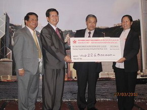 整个慈善晚会气氛热烈、欢快,共筹集慈善款4亿多越盾(约合两万多美元)。晚会结束前,香港商会会长卢国联代表商会当场向胡市天福残疾儿童福利院捐款两亿两千六百万越盾(约合12000美元),同时拟向胡市越中友协捐6000万越盾,用于为穷人建设“情义屋”,余款留作商会慈善基金。 |