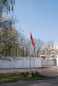 大地震动,江河呜咽,草木哀鸣,苍生泣血,举国悲恸。今日的寒风格外凛冽,空气也因哀伤而凝固。在驻白俄罗斯使馆的小广场上,全体馆员身着素服,佩戴白花,面向青海玉树方向整齐肃立。随着鲜艳的五星红旗徐徐下降,馆员们怀着无比沉重和悲痛的心情默默哀悼,表达对受灾同胞的无限哀思。