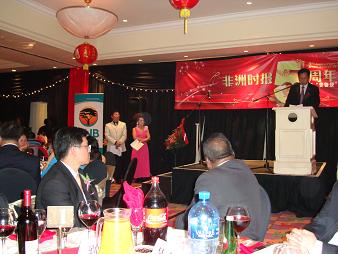 吴少康董事长发言表示,过去5年《非洲时报》不断发展壮大,真诚服务侨社,忠实反映旅南侨胞心声,已成为旅南侨胞手中一份不可或缺的精神食粮。在今后的发展中,《非洲时报》将继续以服务侨民为宗旨,担负起沟通侨胞与祖国联系、促进华侨华人融入当地主流社会及弘扬传统文化的使命。