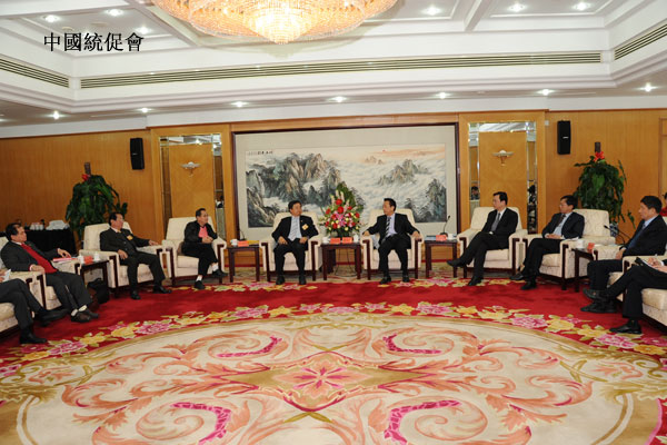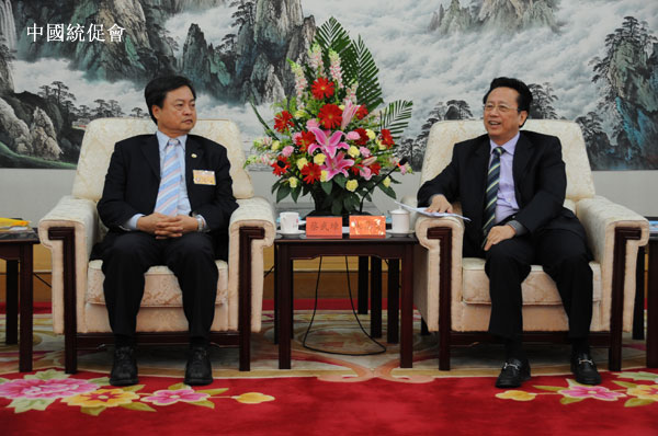 全国人大常委会副委员长、中国和平统一促进会副会长陈昌智(右)与访问团团长蔡武璋(左)