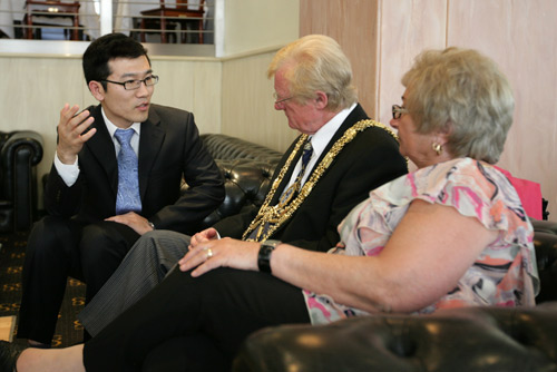 英国华夏文化协会会长贝学贤率副秘书长兼教育部部长李鹏,新闻部副部长张博等一行出席了会见。贝会长对新任市长Councillor Geoff Wells表示了衷心的祝贺,他说道,“希望英国新任政府继续从战略高度和长远角度把握两国关系,并真心的祝愿中英两国在未来的合作发展上道路平顺。同时也愿意尽自己最大的努力与英国各级政府及民间各大社团共同努力,进一步深化各领域的务实合作。”