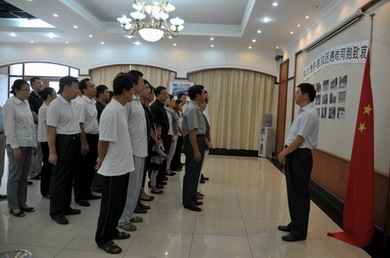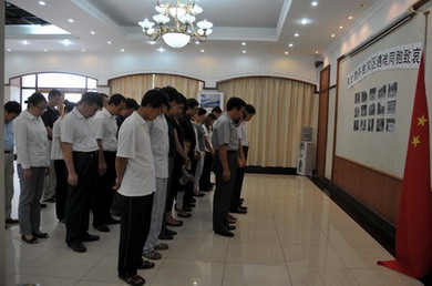 当地时间上午10点,使馆临时代办付吉军带领使馆全体馆员和家属以及驻坦首席军事专家办公室人员集体默哀,深切哀悼舟曲遇难同胞。
