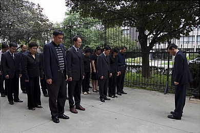 当地时间8月15日,中国驻多伦多总领馆举行降半旗仪式,与全国人民一同深切哀悼甘肃舟曲特大山洪泥石流遇难同胞。在卢坤代总领事提议下,全体馆员及家属向遇难同胞默哀3分钟。