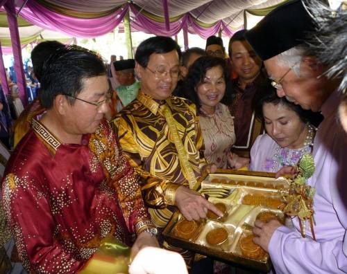 中新网9月19日电 据马来西亚《星洲日报》报道,马来西亚首相纳吉18日回到选区北根举办开斋节门户开放活动,华总会长方天兴率领彭亨华人社团联合会及彭亨中华工商会众领袖一起出席,并赠送月饼予首相,象征月圆、人圆、全民团结!