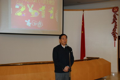 杨大使在致辞中表示,2010年是中沙建交20周年,在中沙双方共同努力下,两国关系保持快速、全面发展势头,高层互访、两国建交20周年系列庆祝活动、上海世博会、广州亚运会等大事、要事不断,掀起一股股中沙关系热,引起国内外广泛关注。过去一年取得的成绩,得益于中央和外交部的正确领导及国内有关部门对使馆各项工作的大力支持,也与全馆同志的辛勤努力密不可分。新的一年里,中沙关系发展面临新的机遇,希望大家继续努力,做好有关工作,为发展中沙战略性友好关系,增进两国人民友谊做出更多贡献。最后,杨大使祝福大家在2011年身体健康,万事如意!