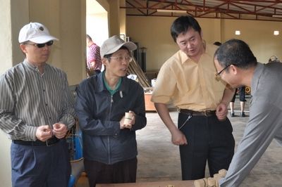 2011年2月5日,驻卢旺达大使舒展考察我援卢竹编项目组、农业技术示范中心等农业项目,并慰问我工作人员。使馆政务参赞李意钢、经商参赞李耀宏陪同。