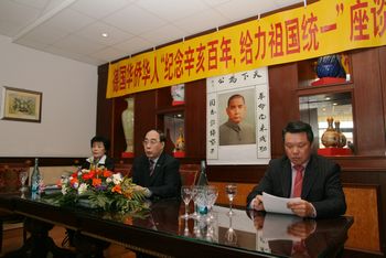 与会代表纷纷踊跃发言,回顾百年来辛亥革命对中国社会的影响,缅怀中山先生为“复兴中华、统一中国”所做的功绩,一致表示将努力发挥海外侨胞的独特作用,为推动两岸关系和平发展,为推进祖国和平统一大业做出更大贡献。旅德台胞代表也表示,辛亥革命是两岸人民曾为之奋斗的共同回忆,然而“统一尚未成功,同志仍须努力”,血脉相连、骨肉相亲的两岸同胞应加强沟通,积累互信,共同完成中山先生的遗愿。