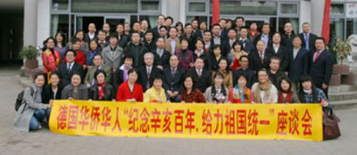 2011年3月31日,由旅德华侨华人中国和平统一促进会牵头,旅德侨界在柏林举行“纪念辛亥百年、给力祖国统一”座谈会。驻德国大使吴红波、领事部主任黎一建参赞以及全德华侨华人联合总会、全德华人社团联合会、巴伐利亚州华商联合会、汉堡华侨华人联合总会等30多个侨团代表、华侨华人、台湾同胞近80人出席。新华社、中央电视台、人民日报、中国国际广播电台以及《欧洲新报》等多家媒体到场报道。