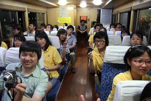 7月12日,“忆江南”组员在苏州古运河的游船内