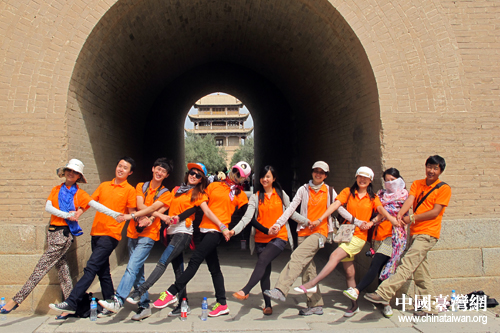 瑶族、满族、回族、水族、畲族、藏族的学子们与台湾青年做着台湾阿美人“大拉手”的动作,连接城门左右两边,这是属于“黄河探秘—西北风情研习营”的专属风景线。(中国台湾网 张洁 摄)