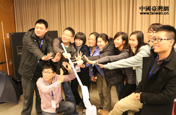 第二届上海交通大学海外台湾留学生“科技之旅”冬令营成员们在一起玩游戏。(由上海交大供图 中国台湾网发)