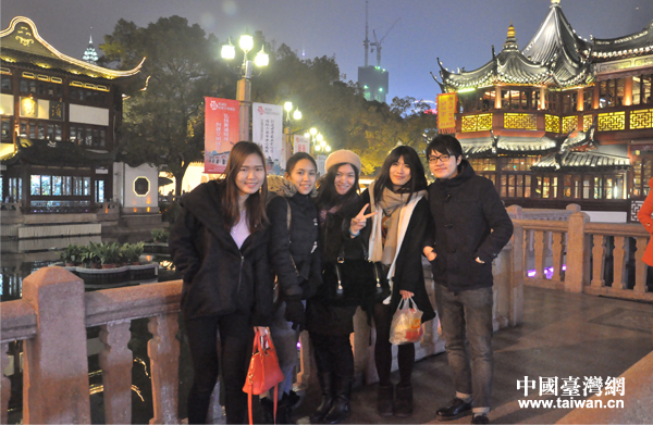 第二届上海交通大学海外台湾留学生“科技之旅”冬令营成员们在参观上海城隍庙。(由上海交大供图 中国台湾网发)