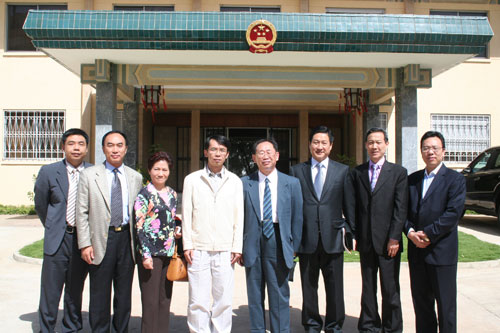 访问团与中国驻塞内加尔卢沙野大使(左四)和塞内加尔统促会成员合影
