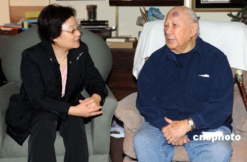 中国国务院侨办主任李海峰二月九日在洛杉矶看望爱国侨领胡顺时表示,老侨在历史上作出的贡献已载入史册,中国政府和人民都铭记在心,永远不会忘记。 中新社发 张炜 摄