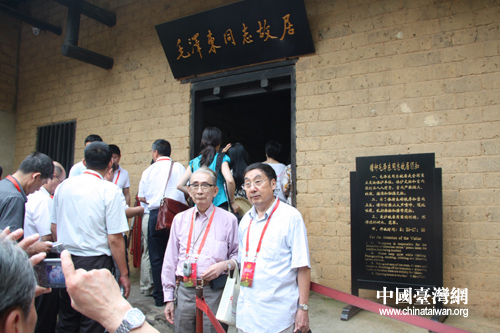 参访团成员在毛泽东故居前合影留念。(中国台湾网 王君飞 摄)