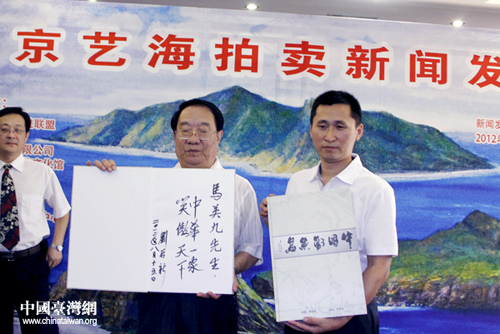 与会嘉宾展示题字。画册将随后转赠给台湾方面相关人士。(中国台湾网 普燕 摄)