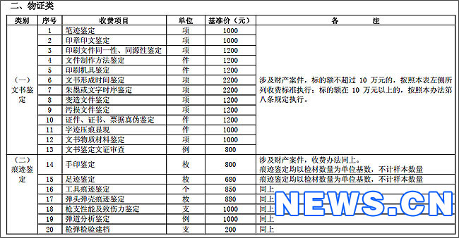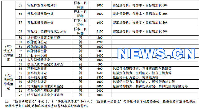 在《司法鉴定收费项目和收费标准基准价(试行)》以外,新增的法医、物证、声像资料类司法鉴定收费项目和收费标准,由省级价格主管部门会同同级司法行政部门制定;国务院价格主管部门会同同级司法行政部门根据各地新增收费项目和收费标准的情况,适时制定全国统一的司法鉴定收费项目和收费标准基准价。